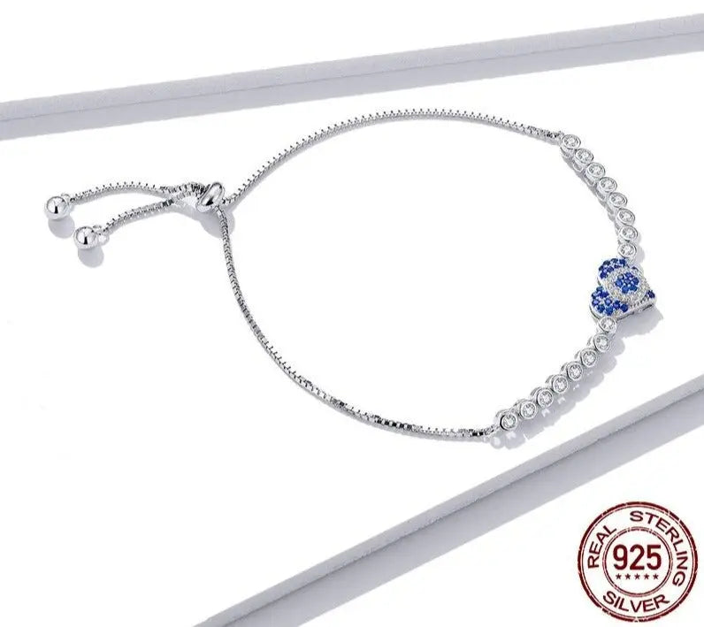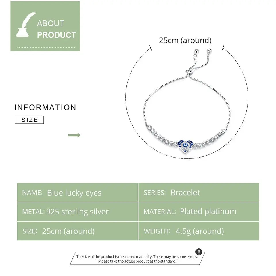 Blue Lucky Heart Bracelet – 925 Sterling Silver Platinum-Plated Charm Jewelry for Women