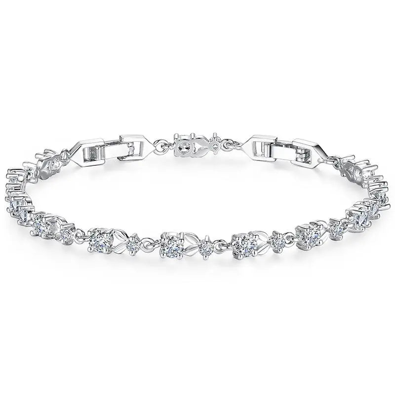 Each link is embellished with high-quality cubic zirconia crystals, offering a diamond-like sparkle without the cost.