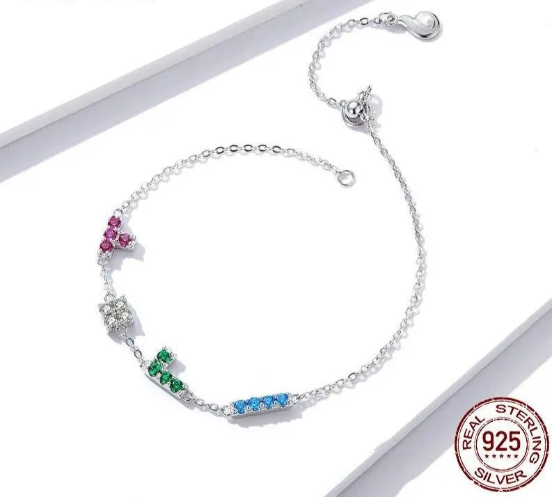 Inspired by the nostalgic charm of classic puzzle games, the Tetris Game Bracelet brings a fun, sophisticated twist to your jewelry collection. Crafted from genuine 925 sterling silver and platinum-plated for lasting shine, this bracelet features minimalist block details that evoke creativity and individuality.