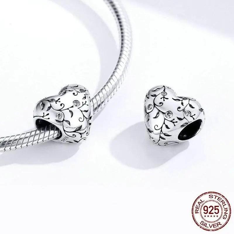 Let your jewelry speak from the heart with this exquisite 925 Sterling Silver Heart Charm, featuring dazzling cubic zirconia stones that rival the brilliance of diamonds. Designed to fit all major European charm bracelets, this piece combines simplicity with sophistication—perfect for expressing love or treating yourself to everyday elegance.