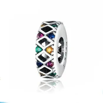 🎪 925 Sterling Silver “Circus Jumping Game” Charm – Colorful Pavé CZ Ring Bead