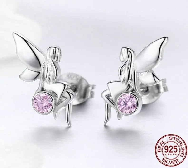 Sterling Silver Flower Fairy Pink Stud Earrings – Elegant & Hypoallergenic