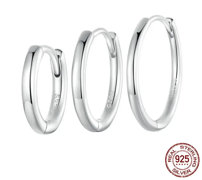 925 Sterling Silver Huggie Hoop Earrings – White Gold Plated with Cubic Zirconia | Minimalist & Versatile