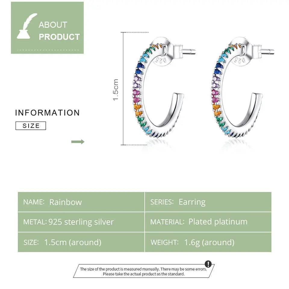 🌈 925 Sterling Silver Rainbow CZ Stud Earrings – Trendy Minimalist Jewelry for Women & Girls