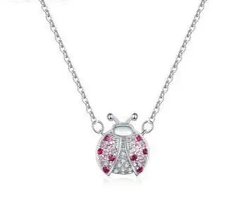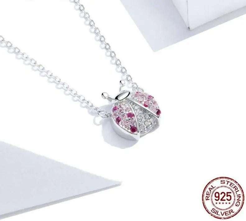 π 925 Sterling Silver Ladybug Pendant Necklace β Grey & Pink CZ Insect Charm for Women