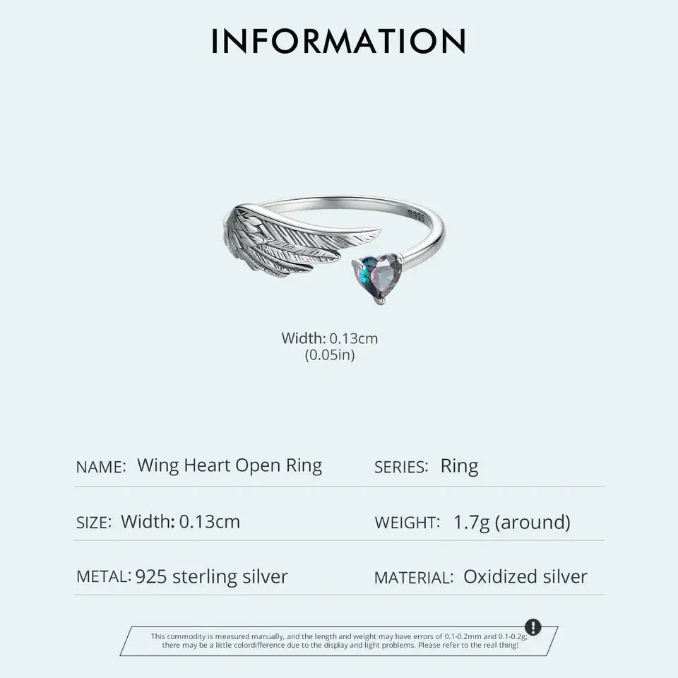 β¨ Angel Wing Heart Ring β 925 Sterling Silver | Protection Open Ring | Boho Chic Jewelry