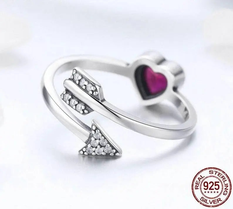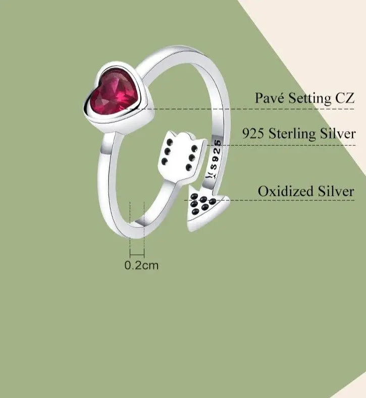 Red Heart and Love Arrow Ring β 925 Sterling Silver CZ Promise Ring