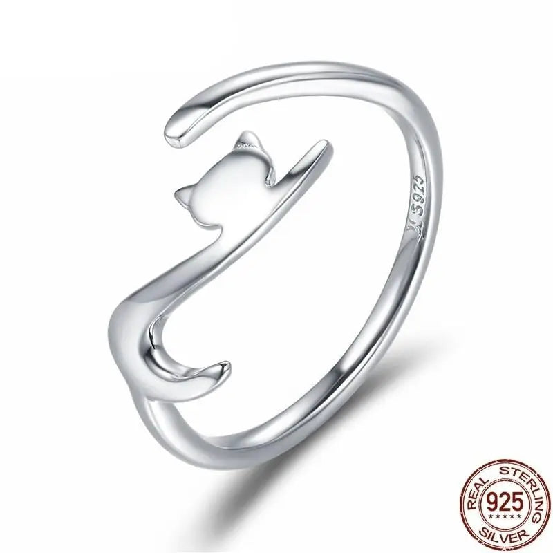 Sticky Cat Ring โ 925 Sterling Silver Adjustable Cat Ring with Long Tail for Women