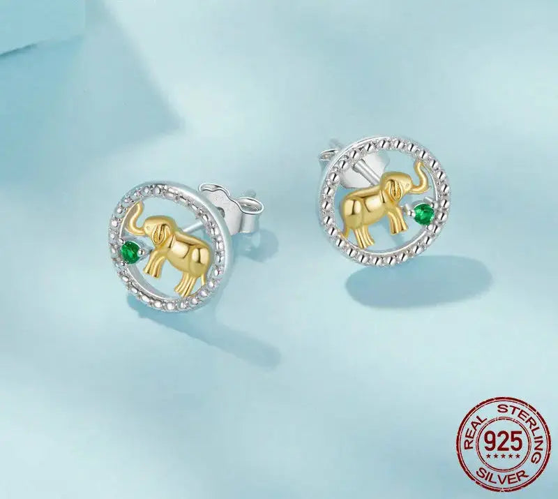 925 Sterling Silver Elephant Stud Earrings – Gold Plated Lucky Animal Jewelry for Women