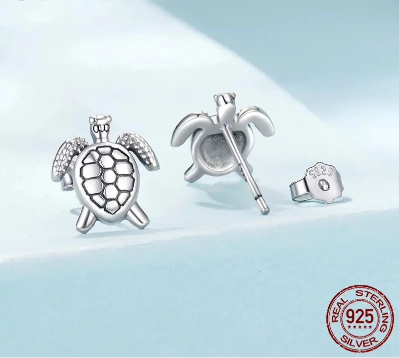 🐢 925 Sterling Silver Sea Turtle Earrings – Tiny Ocean-Inspired Studs for Women