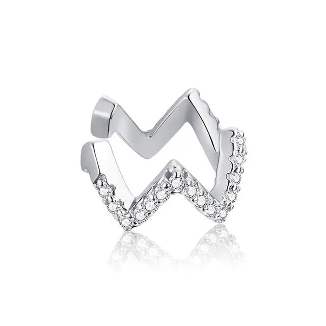 ✨ 925 Sterling Silver CZ Wavy Clip Hoop Earrings – Timeless Elegance, Effortless Sparkle